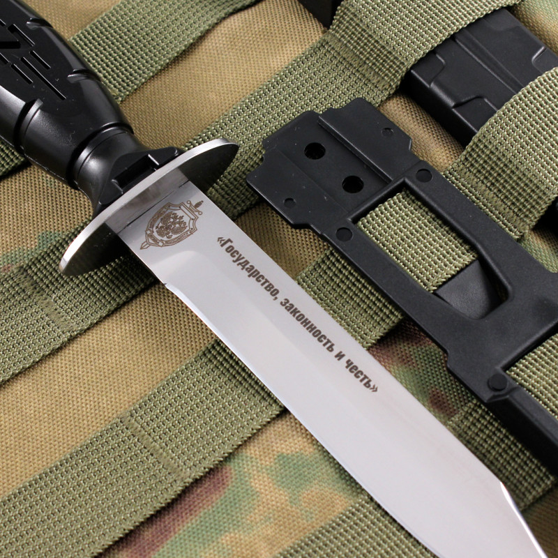Нож имеет несколько конструктивных особенностей, которые разработаны нами для усиления его конструкции и возможности крепления на армейскую амуницию, системы molle. Не является холодным оружием, свободная продажа и ношение.
