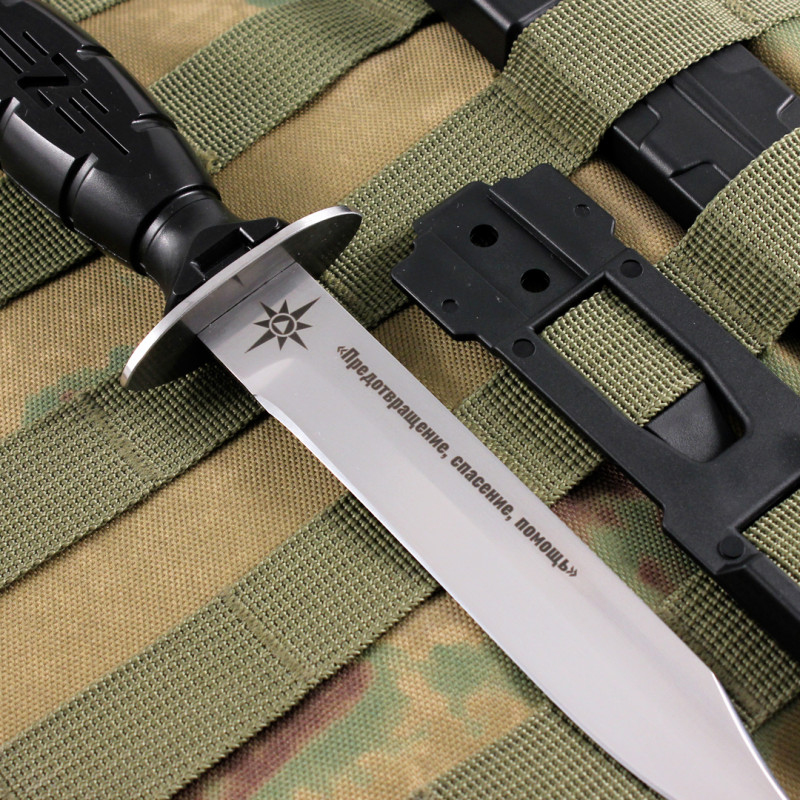 Нож имеет несколько конструктивных особенностей, которые разработаны нами для усиления его конструкции и возможности крепления на армейскую амуницию, системы molle. Не является холодным оружием, свободная продажа и ношение.